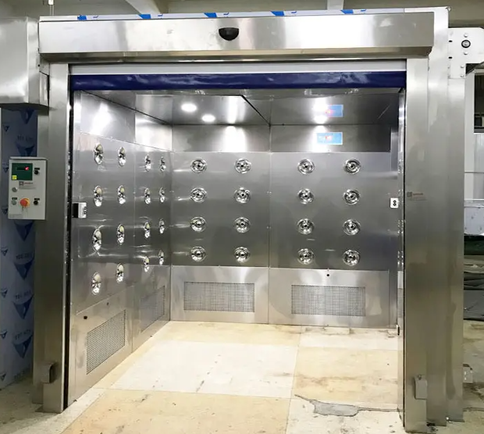 貨淋室是潔凈廠房和潔凈室的輔助設(shè)備,用于除去進(jìn)入凈化廠房的物品表面附著的塵埃,同時貨淋室也起到氣閘的作用,防止未經(jīng)凈化的空氣進(jìn)入潔凈區(qū)域,是進(jìn)行物品凈化和防止外空氣污染潔凈區(qū)的有效設(shè)備。